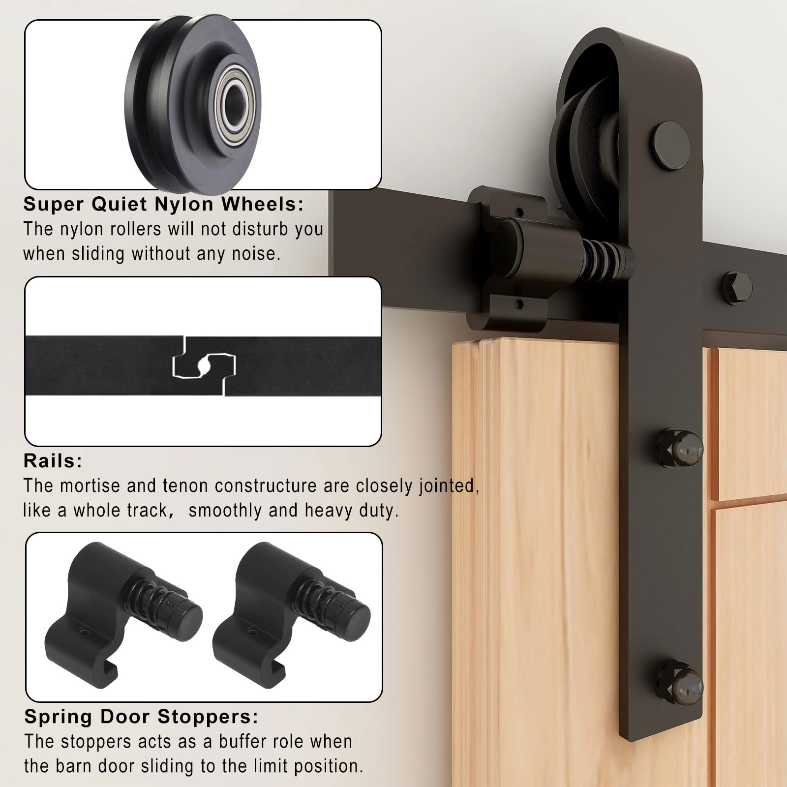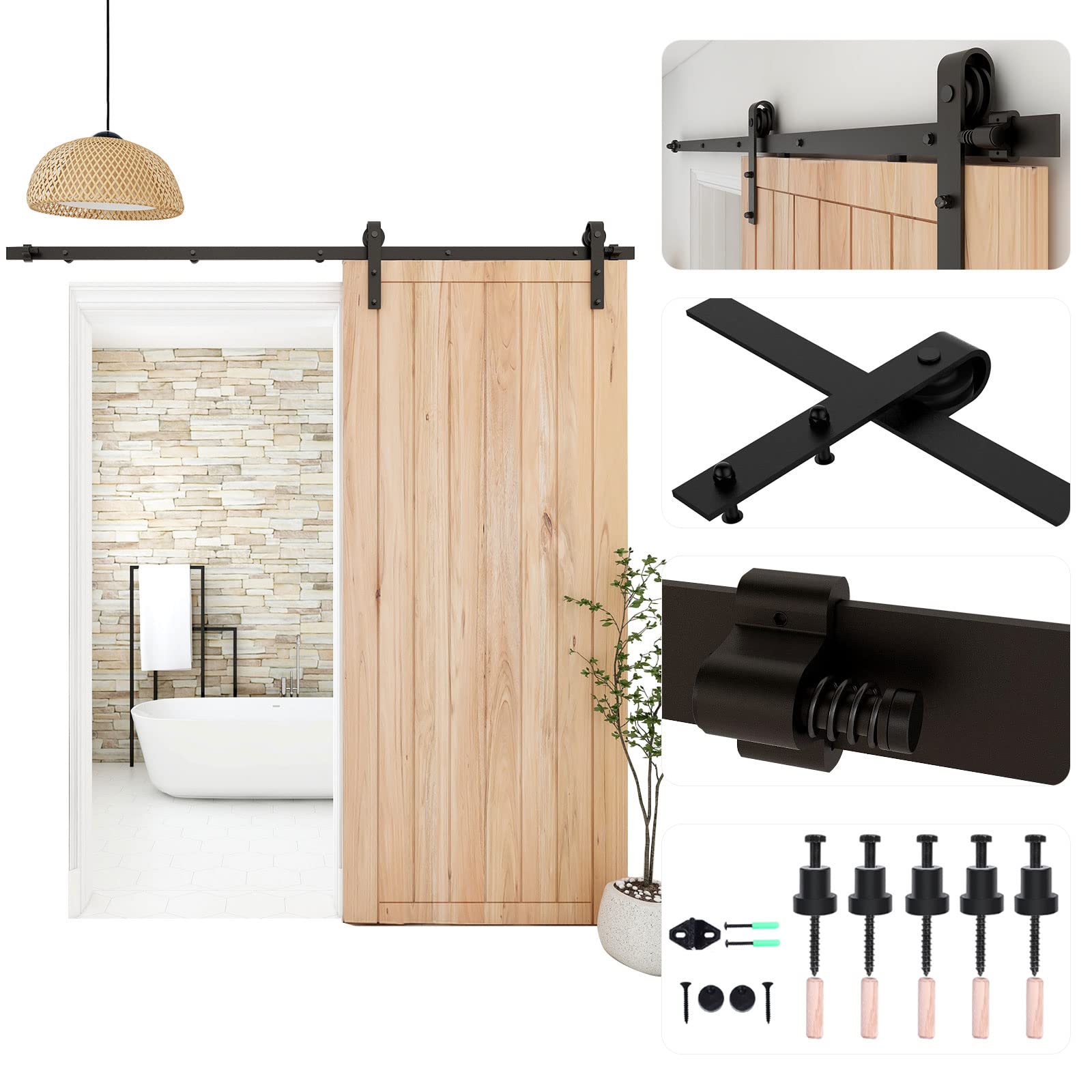 WOLFBIRD 122CM/4FT Quincaillerie De Porte Coulissante Kit Porte Coulissante Rail pour système de quincaillerie à célibataire porte