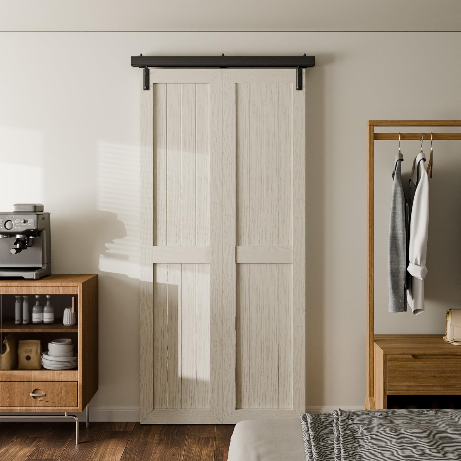 WOLFBIRD 1M/3.3FT Bifold Schiebetürbeschlag für einseitig gerichtetes Beschlagsystem, Box-Spur Geeignet für 2-Türen mit einer Gesamtbreite von 100CM(Ohne Türverkleidungen)