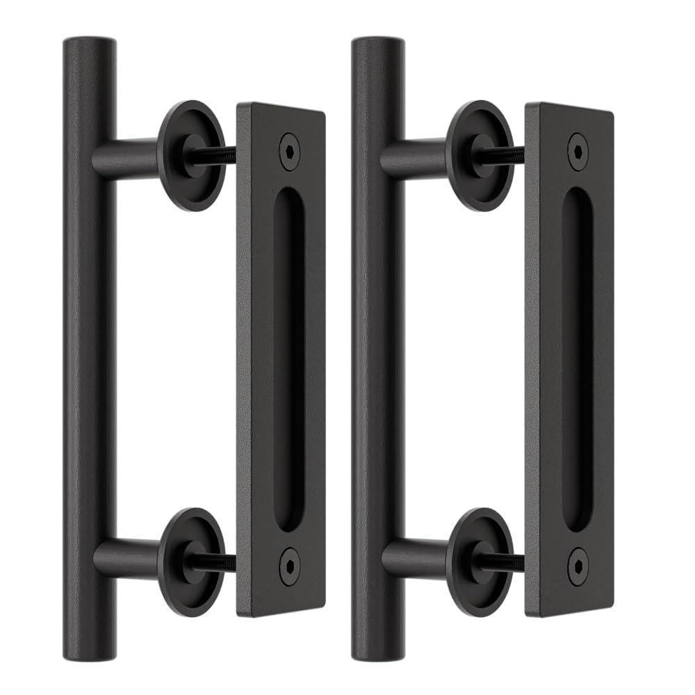 WOLFBIRD 24 cm Barn Door Handle, Sliding Door Pull Handle, Black Door Handle, Sliding Door Handle, Kitchen Handles, Sliding Door Handle, for a Wooden Door, Cupboard Door, 2 Pieces