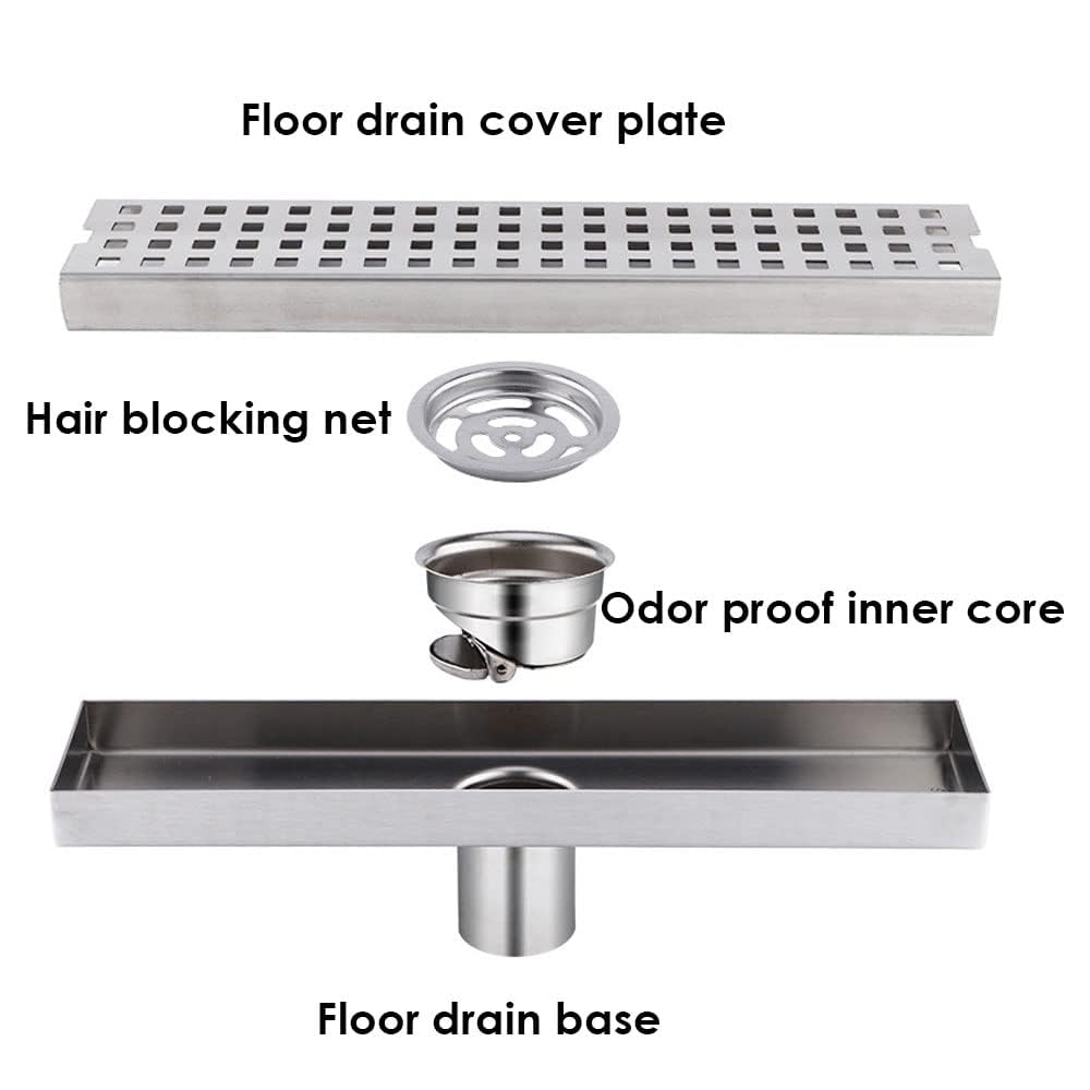 - ✅【Funktion】 Der Duschkanal ist mit Desodorierungssiphon und Haarfilter ausgestattet. Der eingebaute Siphon kann den Rückfluss von Schmutzwasser und Geruch verhindern und das Badezimmer sauber halten. Der eingebaute Filter kann Abfälle filtern, um Verstopfungen zu vermeiden. Der eingebaute Siphon kann den Rückfluss von Schmutzwasser und Geruch verhindern und das Badezimmer sauber halten.