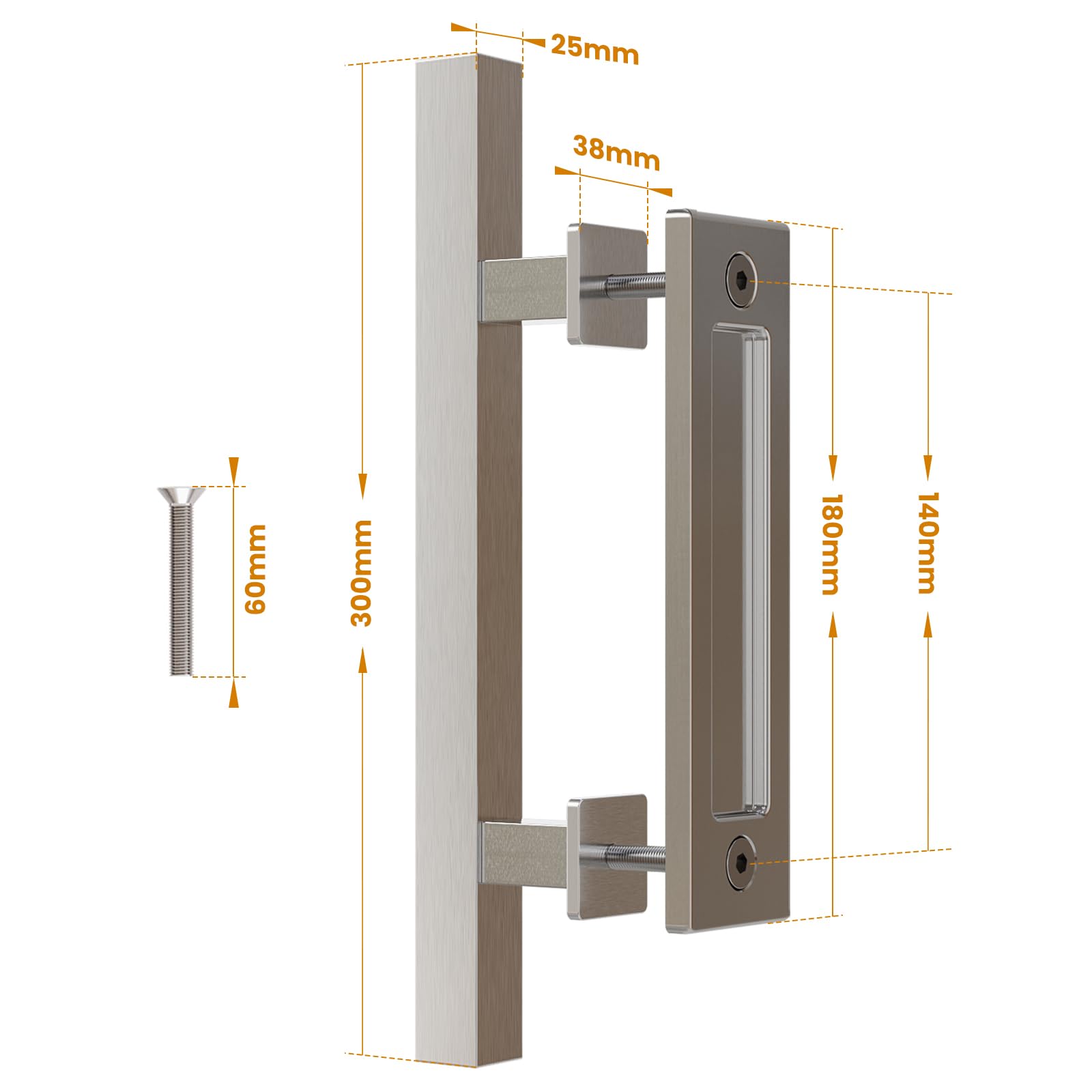 WOLFBIRD 30CM Scheunentorgriff Schiebetür zieht-Griff Rostfreier Stahl Doppelseitige Eingebettet Silber