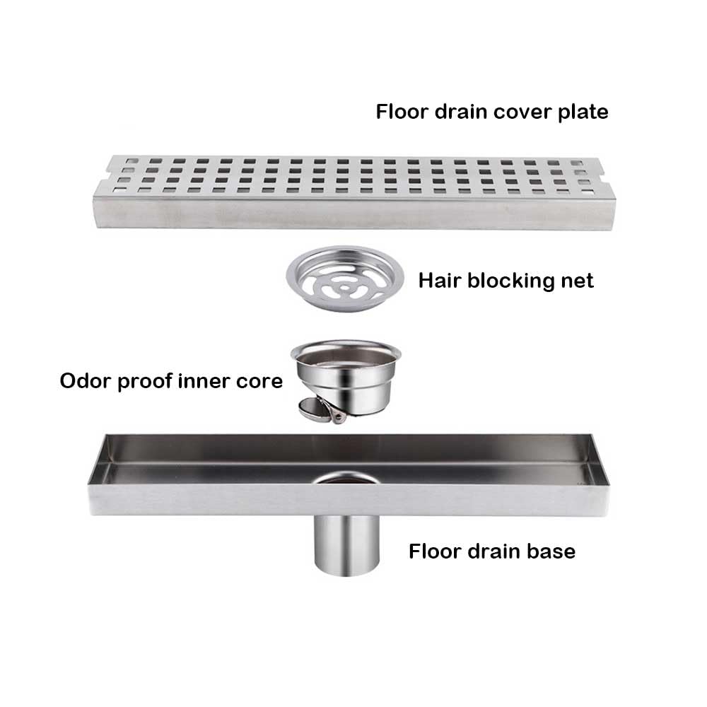 - ✅【Funktion】 Der Duschkanal ist mit Desodorierungssiphon und Haarfilter ausgestattet. Der eingebaute Siphon kann den Rückfluss von Schmutzwasser und Geruch verhindern und das Badezimmer sauber halten. Der eingebaute Filter kann Abfälle filtern, um Verstopfungen zu vermeiden. Der eingebaute Siphon kann den Rückfluss von Schmutzwasser und Geruch verhindern und das Badezimmer sauber halten.