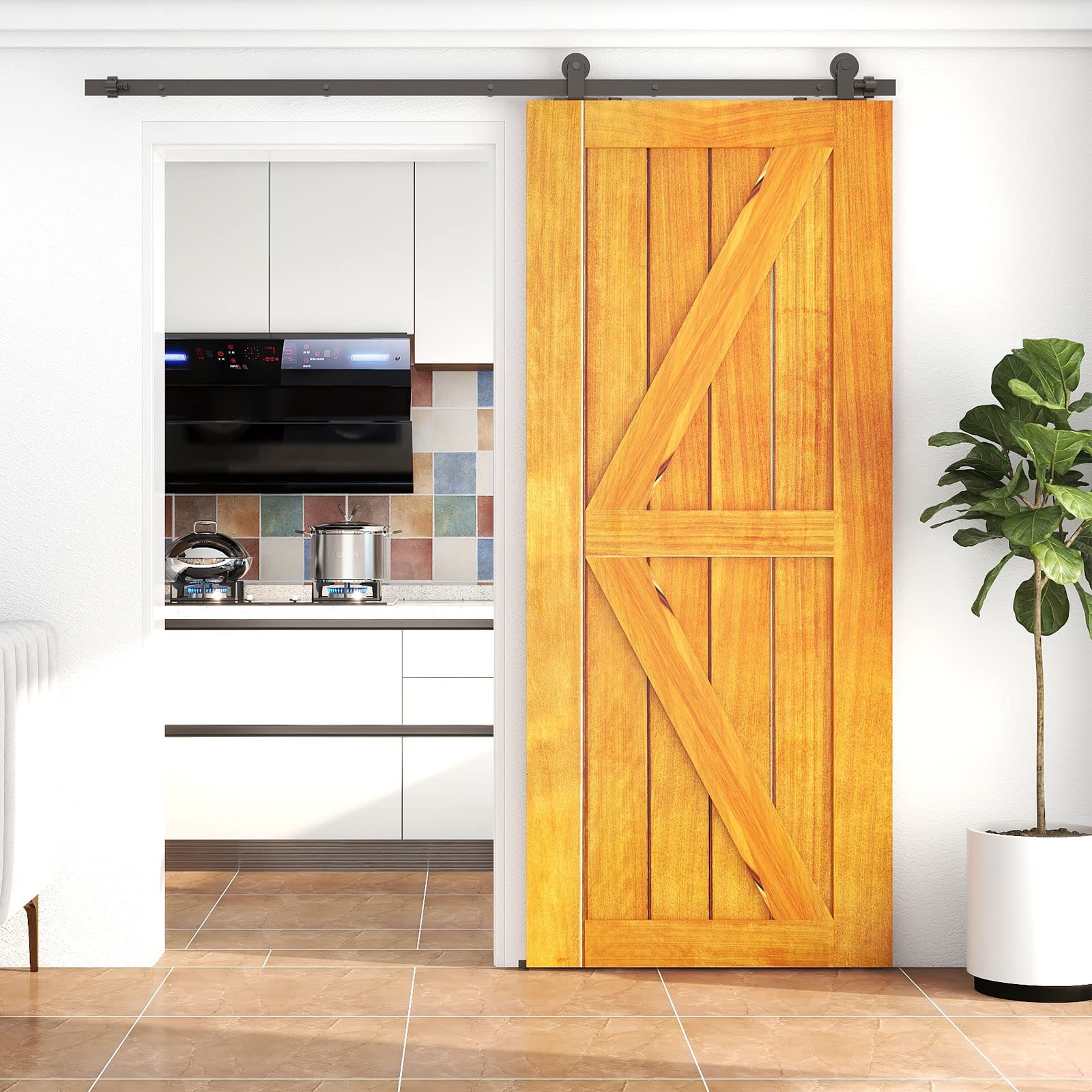 WOLFBIRD Sliding Barn Door Kit, 6.6FT/200CM Heavy Duty Closet Barn Track, Hardware Kit for Single Wood Doors, T Shape Hanger for Single Wooden Gate Interior