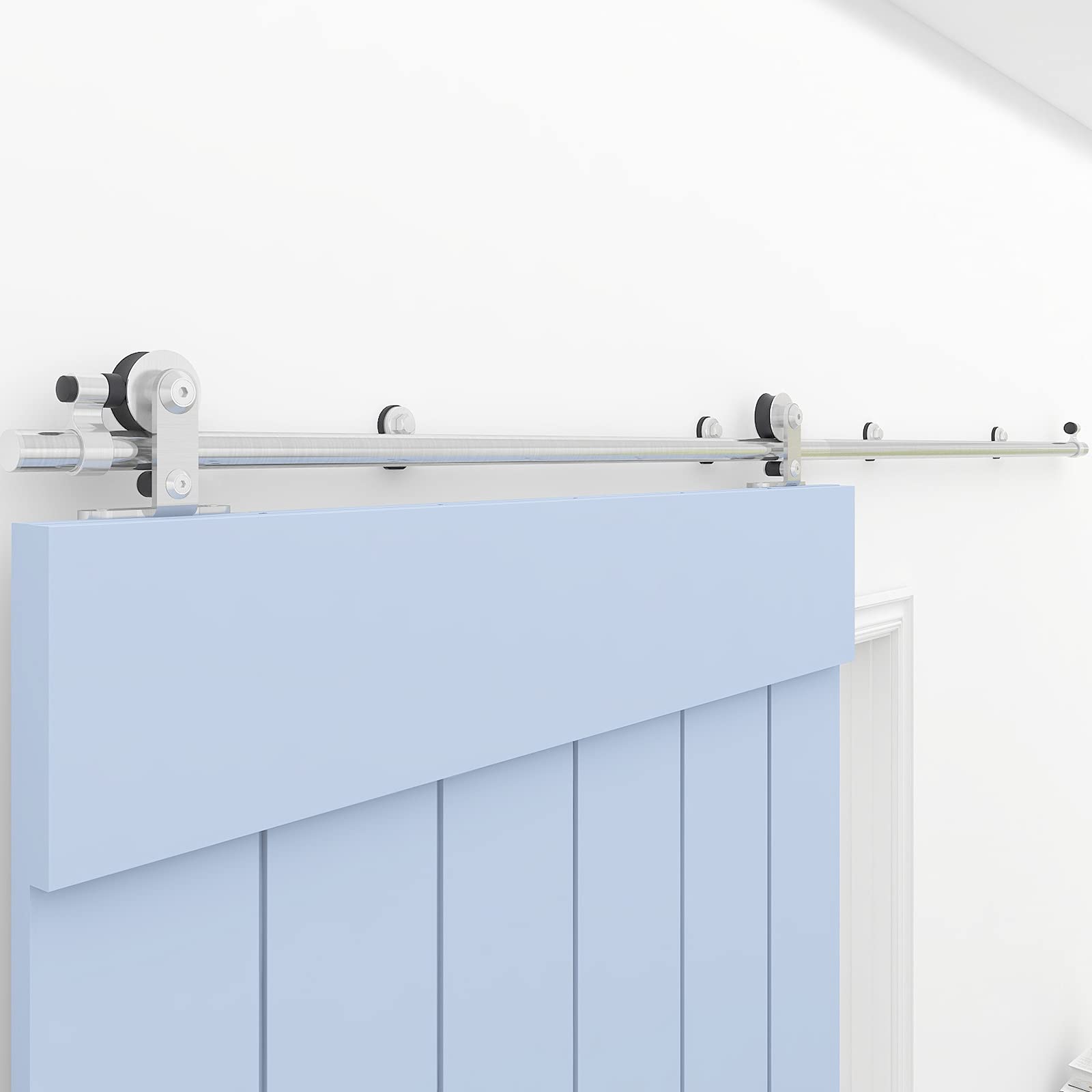 WOLFBIRD Stainless Steel Sliding Barn Door Hardware Kit 5.5FT/167CM for Single Wood Door Heavy Duty Sliding Door Track - T Shape Hanger